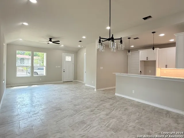 Welcome home to this brand-new 4-bedroom, 3-bath home offering modern style and smart design. Fully fenced. This single-story layout features all-tile flooring, 8' interior doors, and solid surface countertops throughout. The large primary suite includes a high ceiling and spa-like walk-in shower, while a separate guest suite with its own full bath provides flexibility for visitors or multi-generational living. Conveniently located near Culebra Rd, just minutes from Lackland AFB and downtown San Antonio.